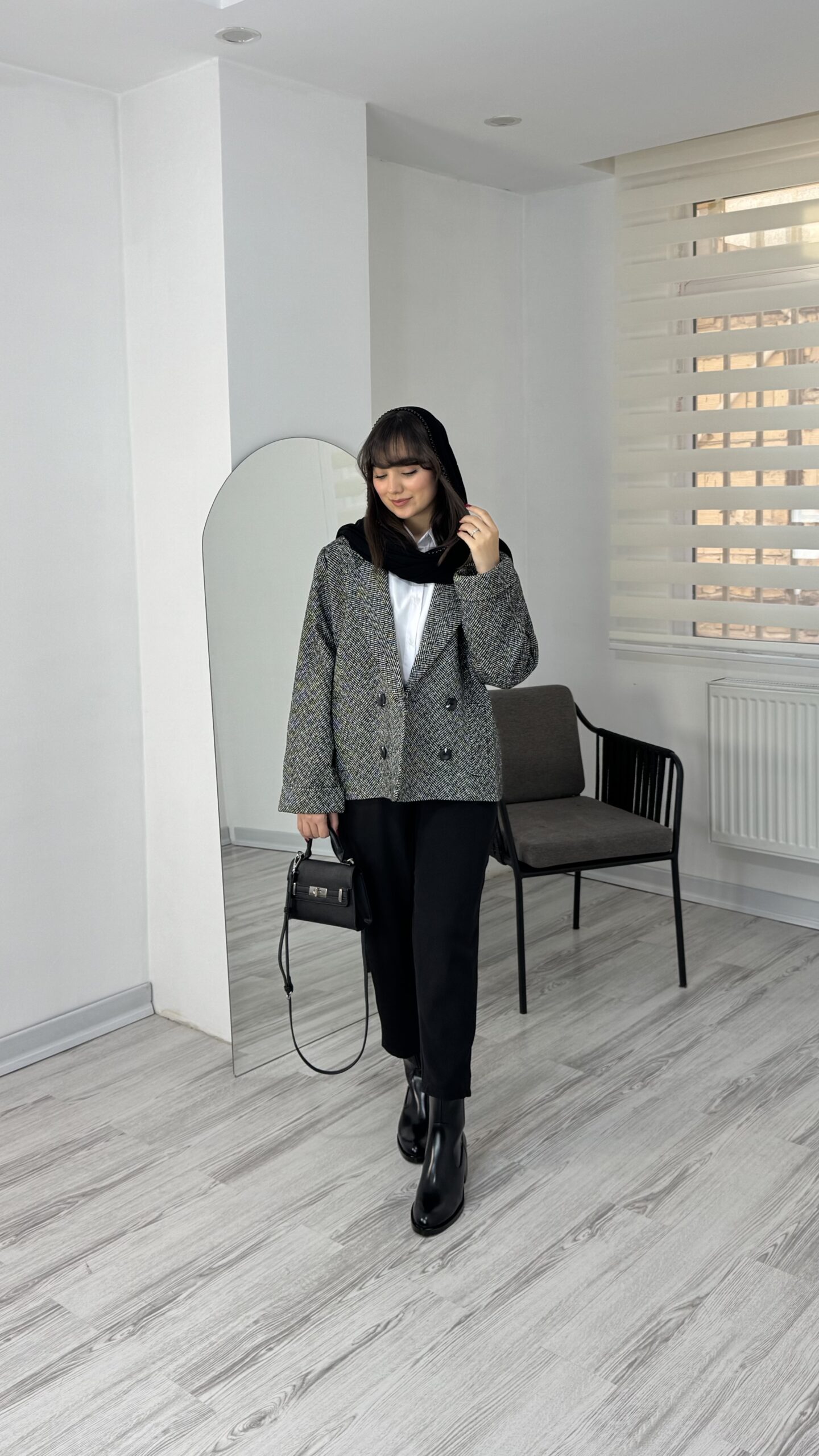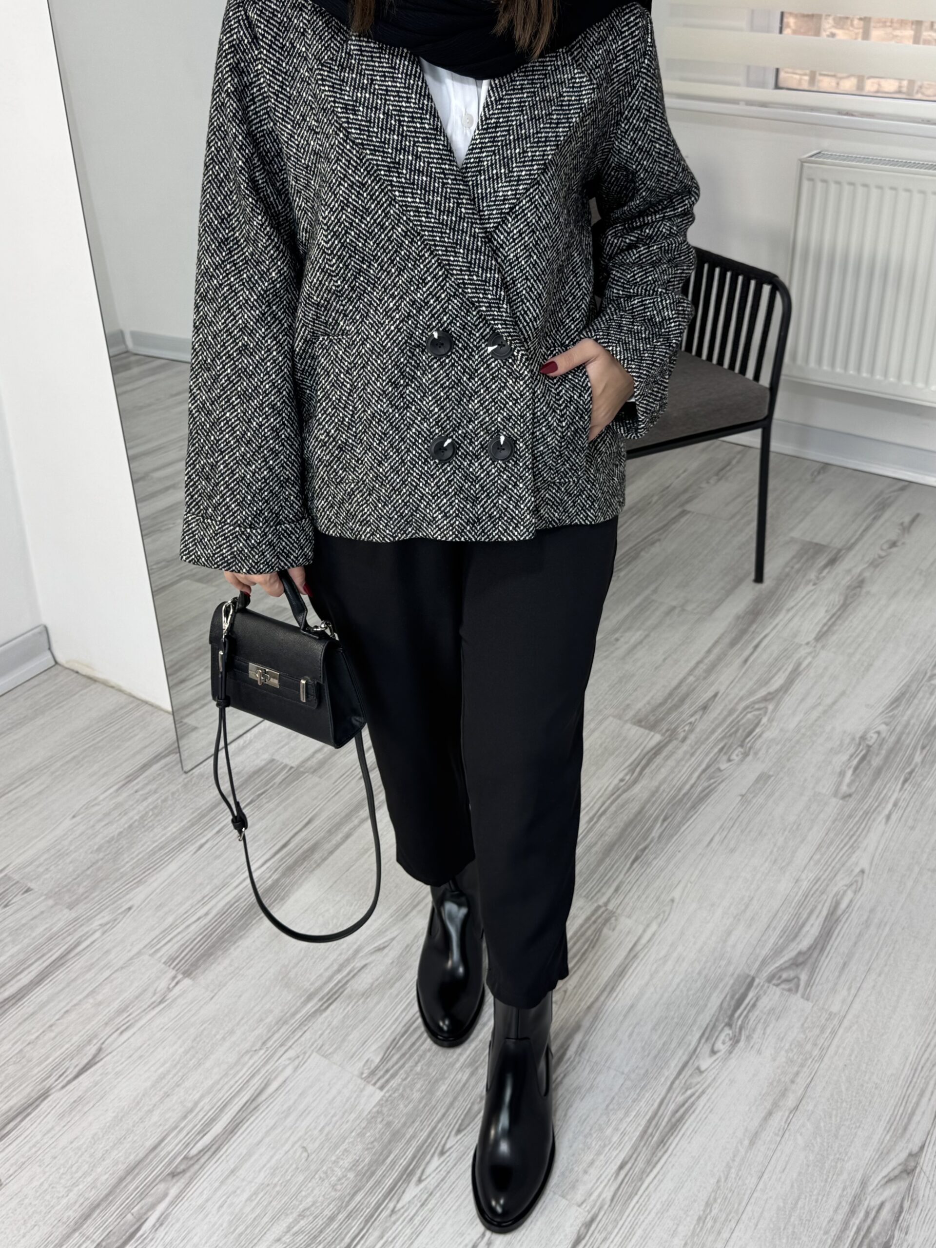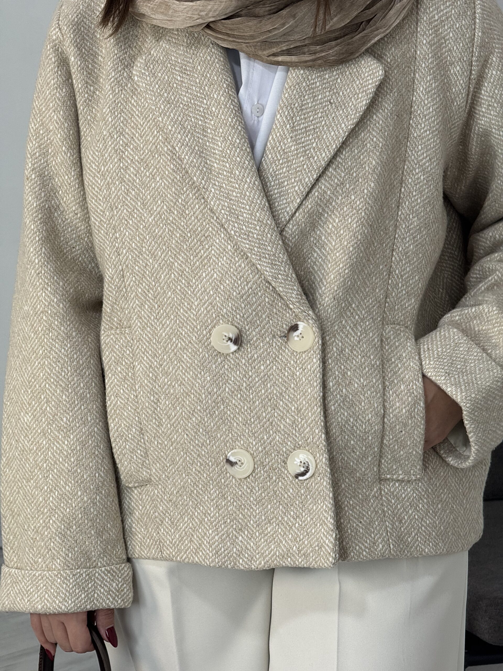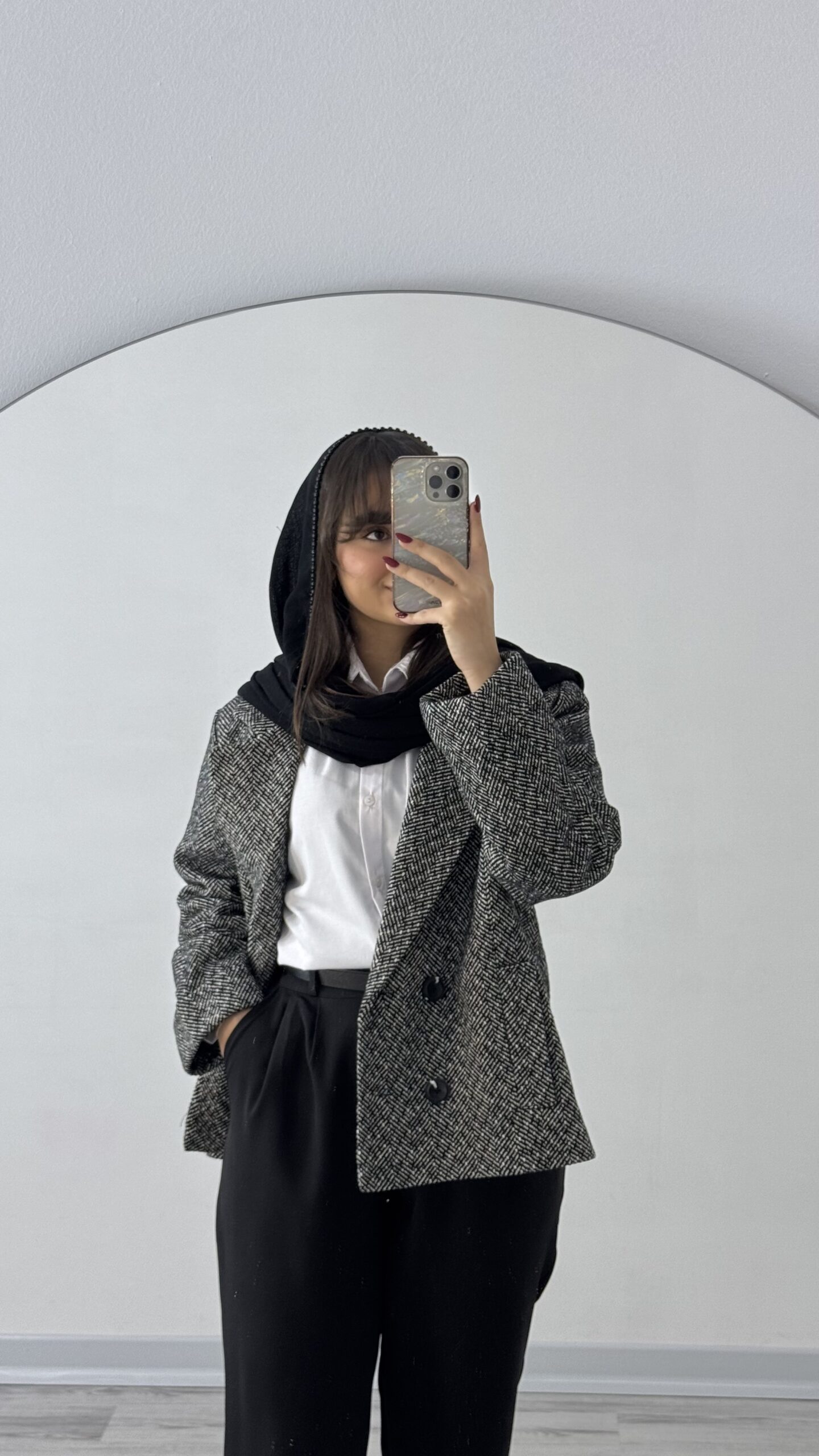 جنس پارچه ضخیم و گرم بالا و داخلش کاملا آسترکشی شده